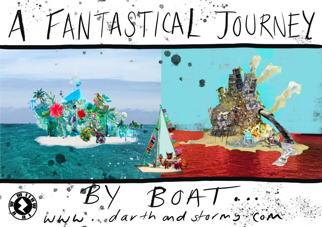 Inspired by the fictionalised landscapes in the writing of the blog http://www.darthandstormy.com and not being able to carry many theatrical artifices on the boat VR appeared be an interesting option in terms of creating an immersive other world.