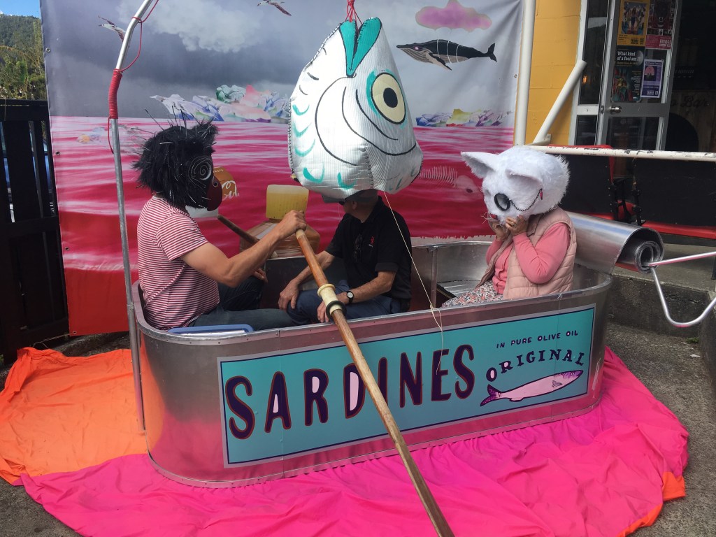 Developed for Splore Music Festival 2020 http://www.splore.net and with future touring in mind. A Fantastical Journey by Boat is an immersive performance and multimedia experience which takes you across a magical ocean. Join the Owl and the Pussy Cat on their Pea Green Boat and enter a transformed seascape where birds may fly backwards and icebergs could be pink. This is a two person at a time performance which explores virtual reality and eco-anxiety all with a nonsensical twist. The show has travelled to Whangarei Fringe, Bay of Islands and the Maritime Museum and was selected as part of the Aotearoa garden ARS festival 2021 www.ars.nz
