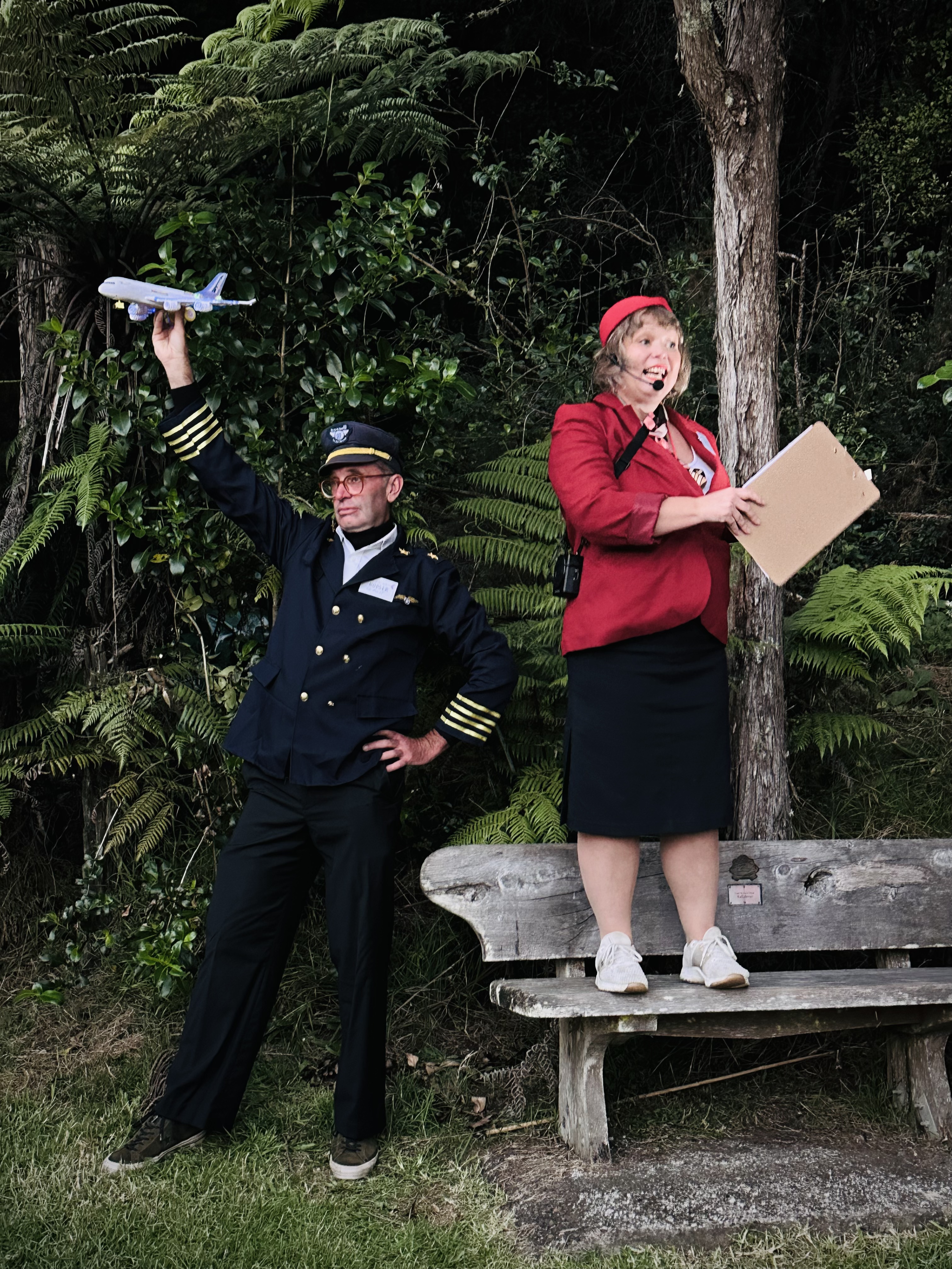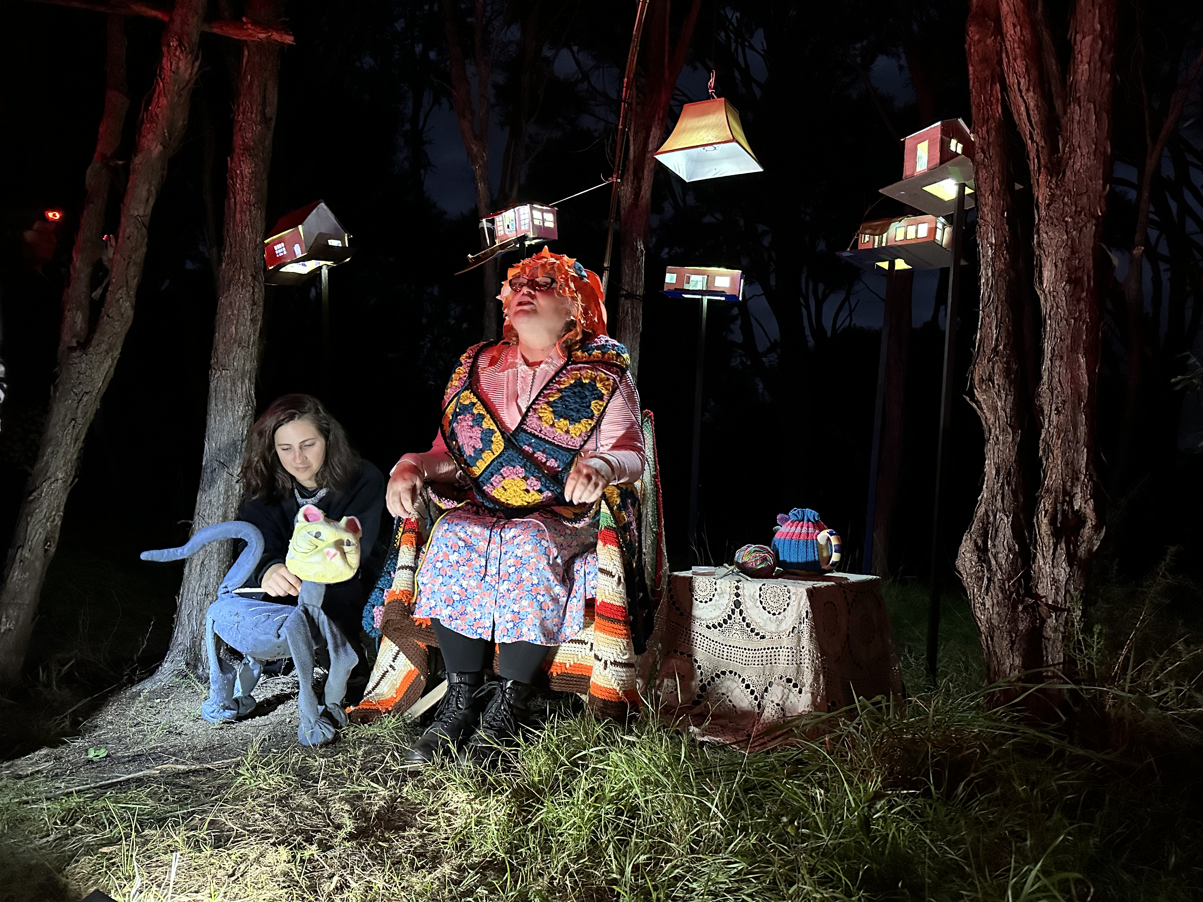 Night Flight is a site specific, outdoor promenade performance at night. It is a journey through Te Toki reserve, Waiheke Island where we encounter isolated characters, lit up in the dark, struggling with their present thinking, with their thoughts of the future. The characters (and audience) find a reconnection to nature along the way and a metaphysical re-wilding emerges, a revolutionary carnival for all. Night Fight is a visual spectacle inspired by fair ground rides, encompassing physical theatre, puppetry and music. Made with Community volunteers part of this projects purpose was to empower participants to break the rules and defy the genres and quality of what is deemed as typical ‘amateur’ theatre. The project has support from Blake New Zealand, Ministry of the Environment and the Waiheke Marine Project and is part of Eco Fest 2023.