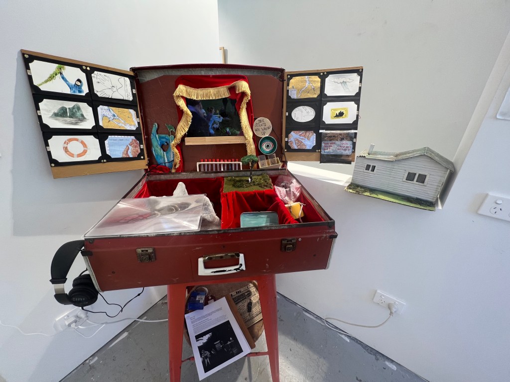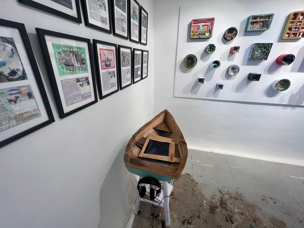 Solo show exhibiting at Anomalous Gallery, Waiheke Island and Studio One Toi Tu, Auckland 2024. Tinned Goods- Assorted tins, card/wood, paper, watercolour, gouache and acrylic. Other- Mixed media, video and augmented reality work.