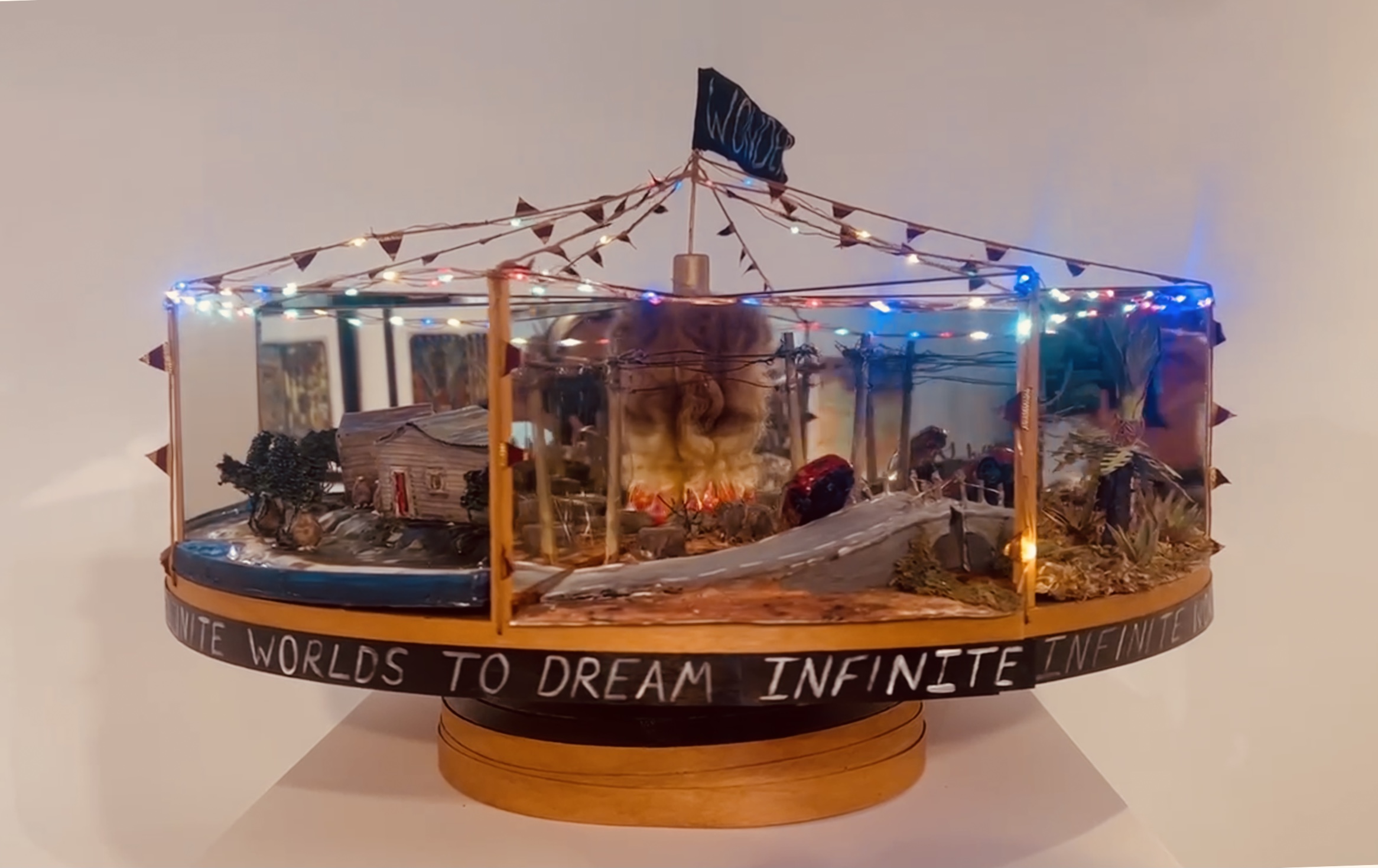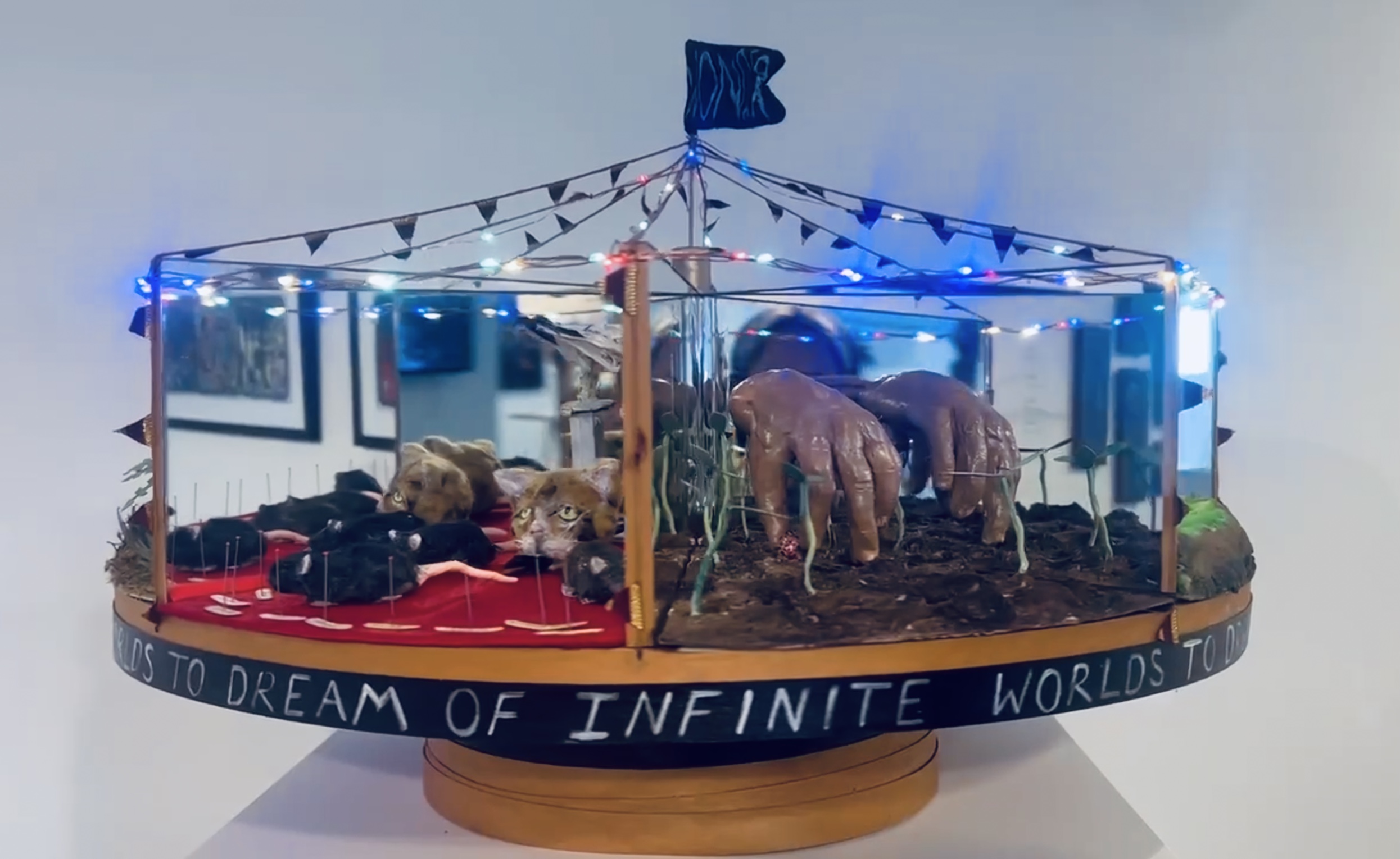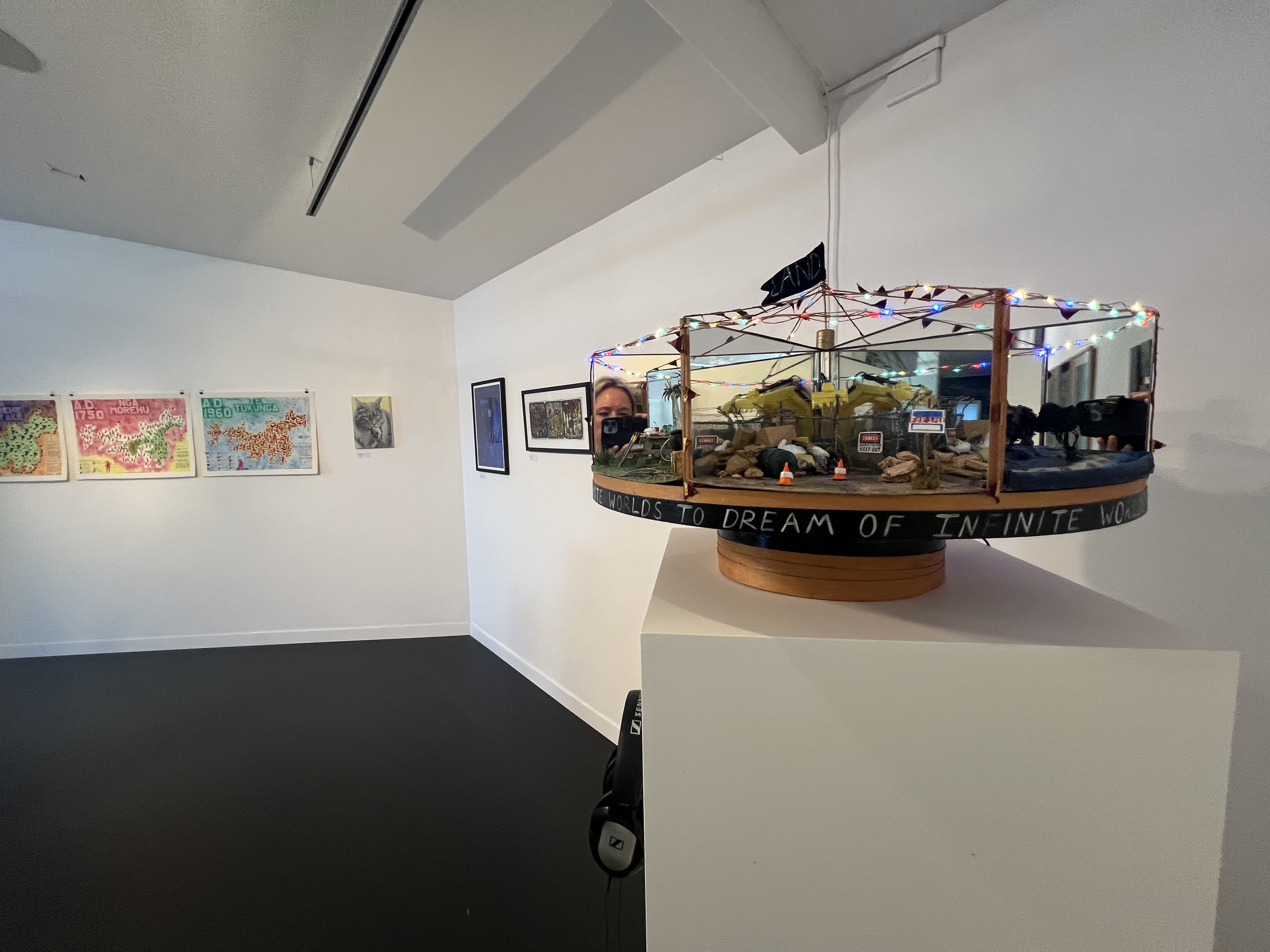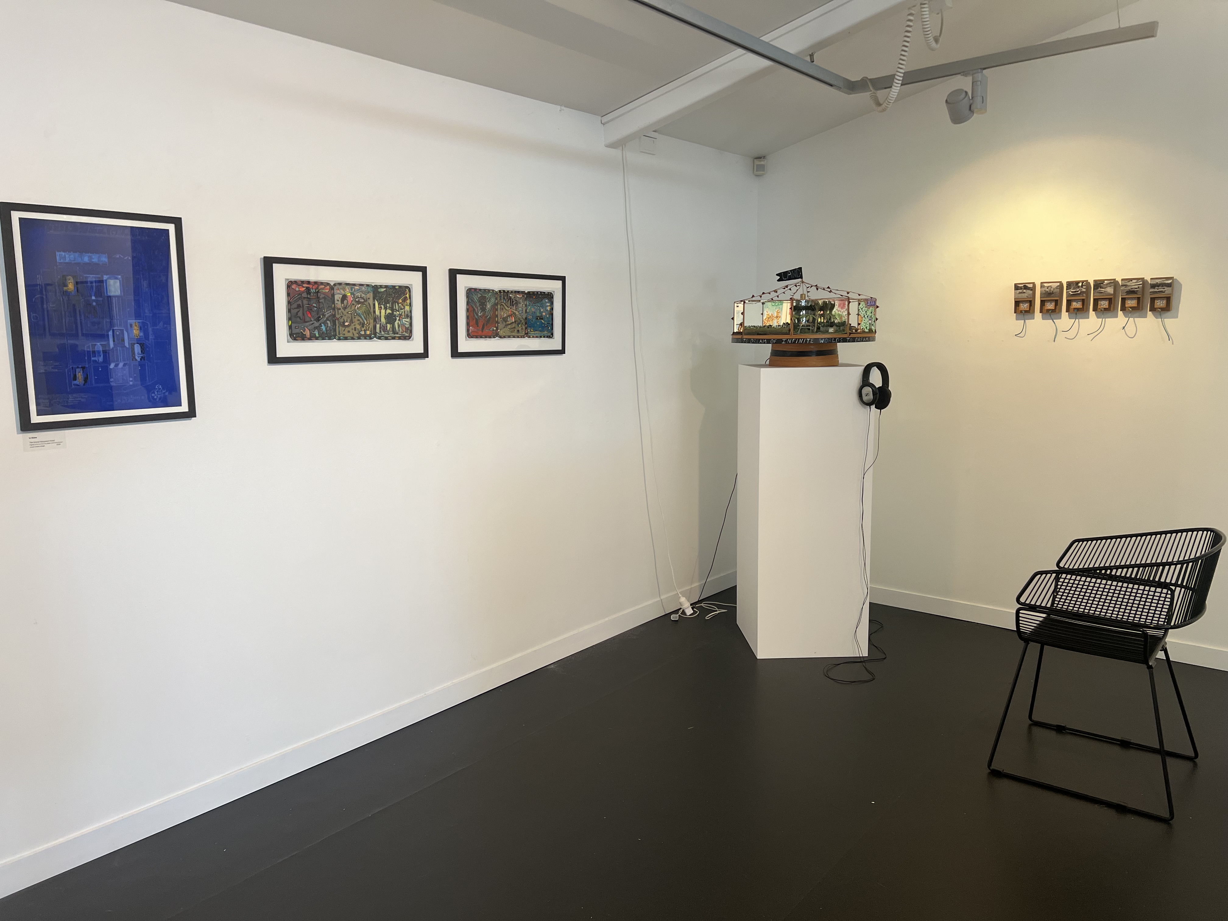 SJ’s work for this show includes a motorised 360 degree diorama, collage paintings and prints with augmented reality component. Sound design and composition for the diorama by Arli Liberman.