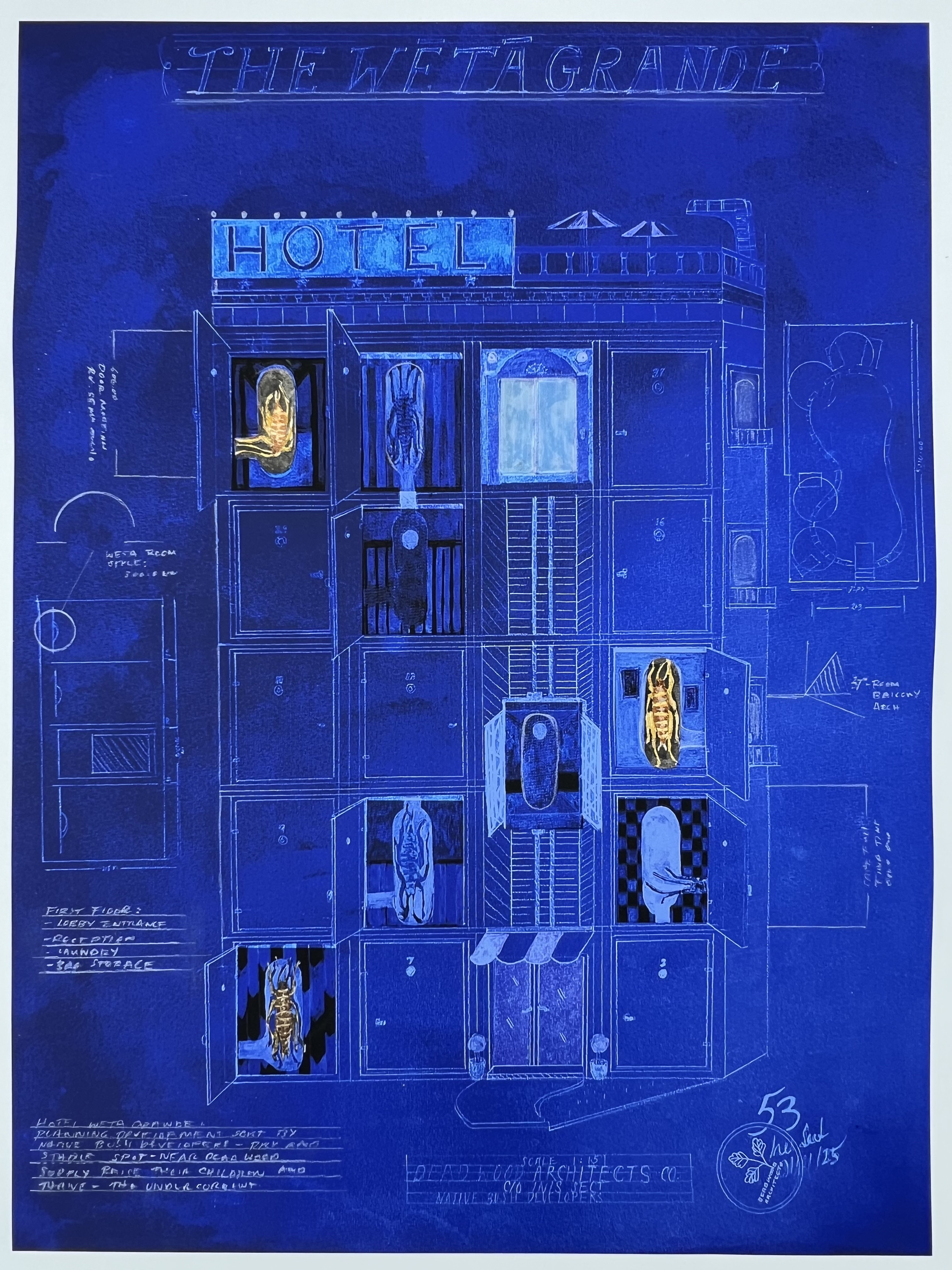 Group exhibition Waiheke Art Gallery 2025. In collaboration with island-based creatives, Understory sheds light on Waiheke’s transformation from a once-barren landscape of sheep farms to the locus of conservation action. The interactive exhibition celebrates decades of dedication by conservation visionaries, practitioners and volunteers through sculpture, printmaking, painting, nature journals, photography and sound.